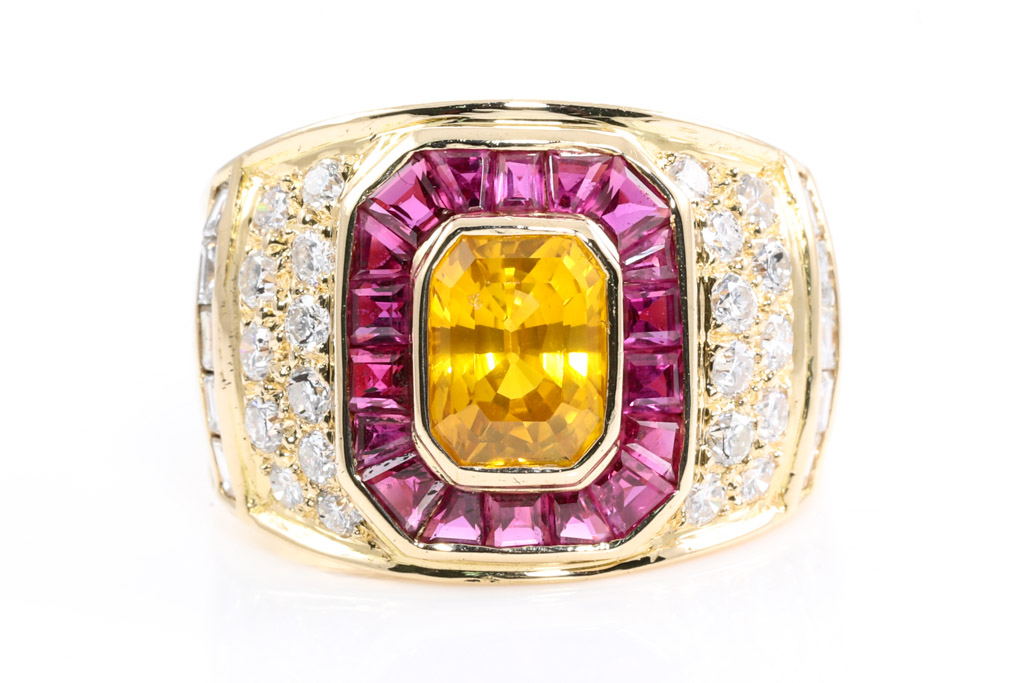 Citrine, Ruby and Diamond Mens Ring