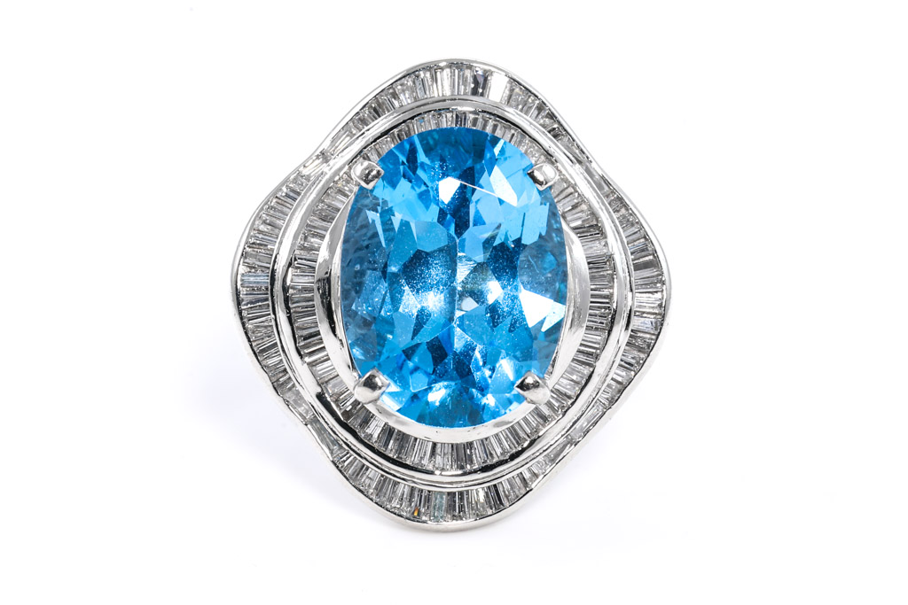 12.02ct Blue Topaz and Diamond Ring