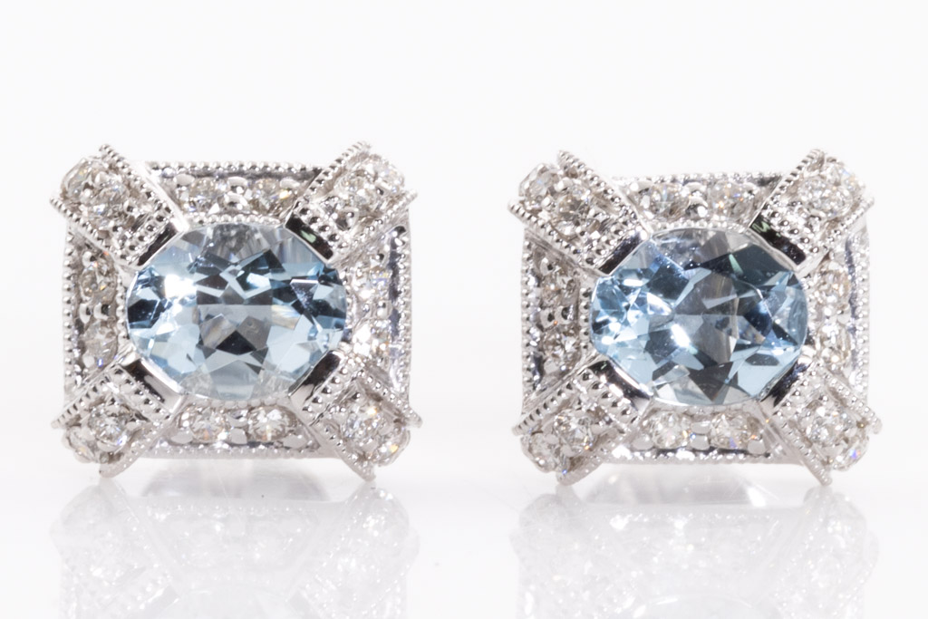 1.32ct Aquamarine and Diamond Earrings