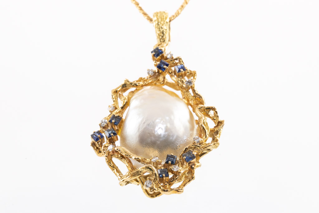 Baroque Pearl and Sapphire Pendant