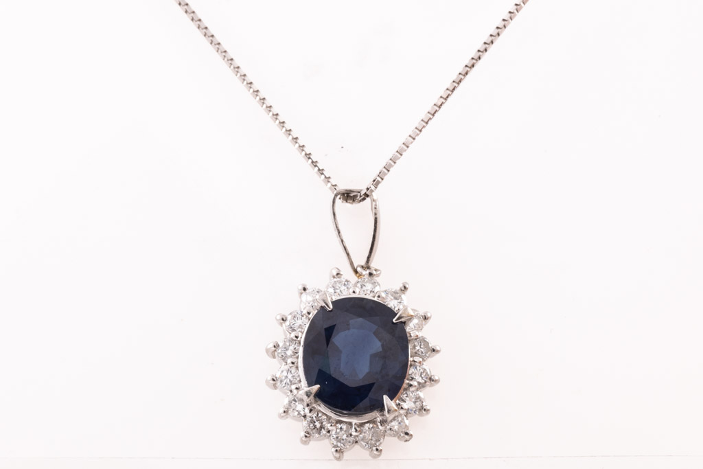 7.79ct Blue Sapphire and Diamond Pendant