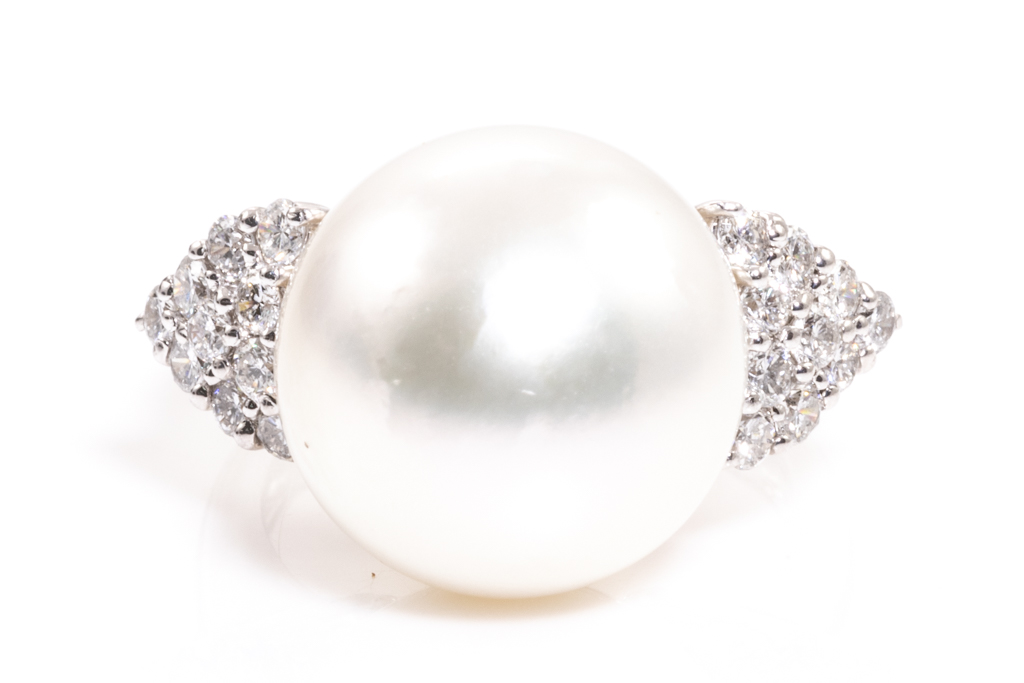 14.3mm South Sea Pearl and Diamond Ring