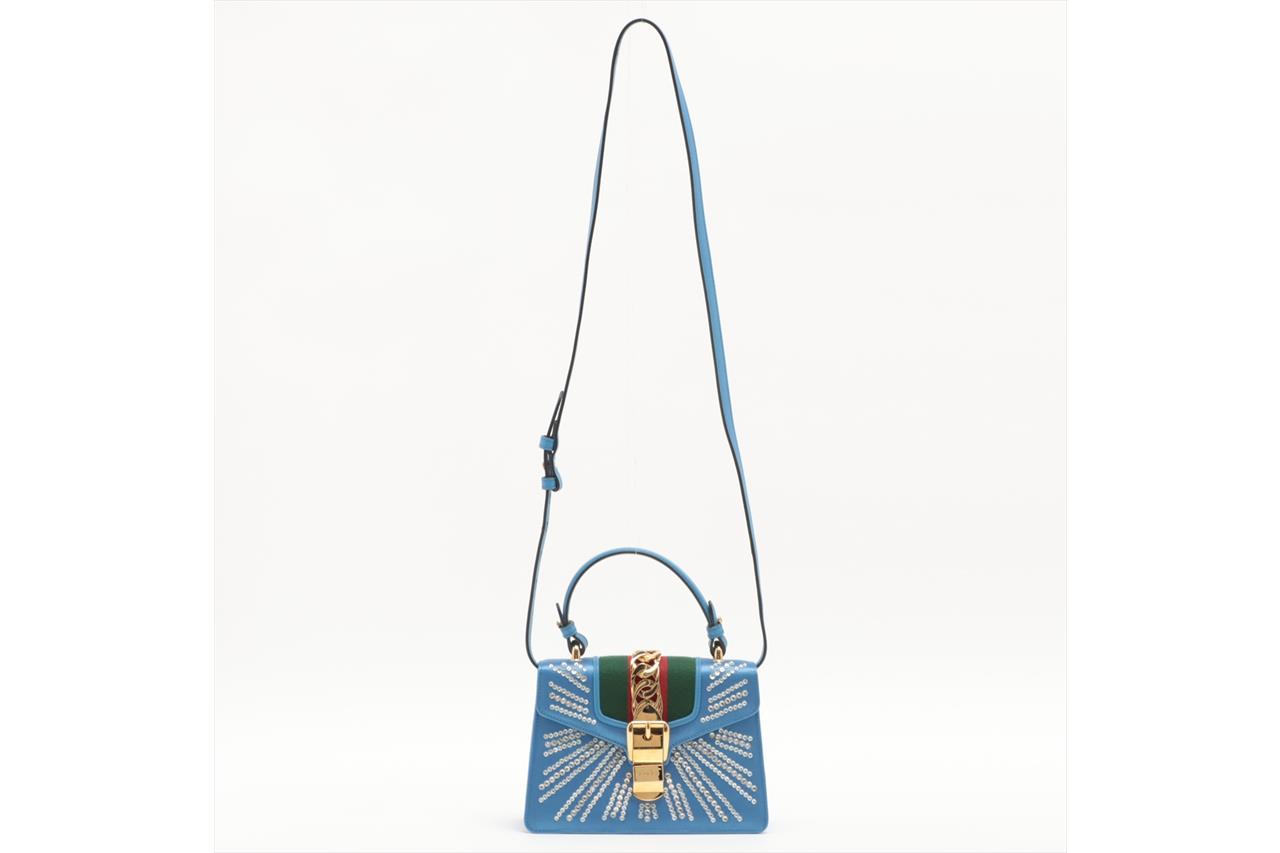 Gucci Sylvie Top Handle Bag Crystal Embellished Satin & Leather Mini