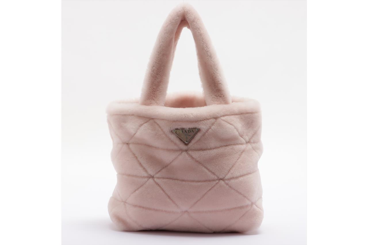 Prada Pink Shearling Logo Tote Bag