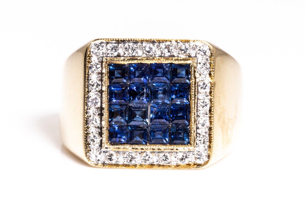 1.80ct Sapphire and Diamond Mens Ring