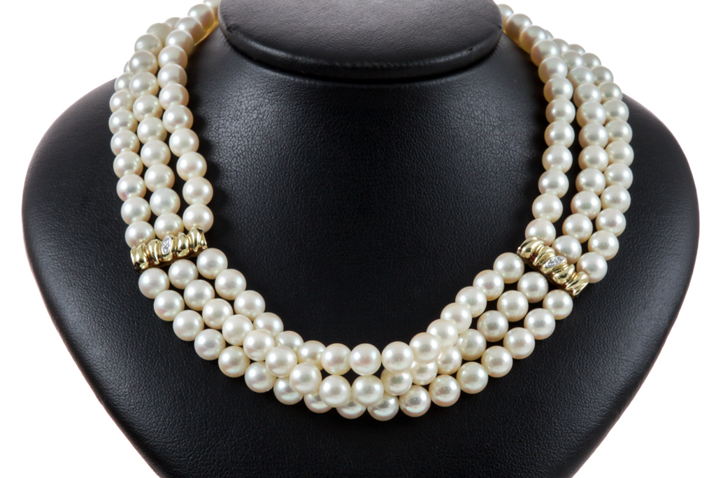 6.5-6.9mm Akoya Pearl & Diamond Necklace