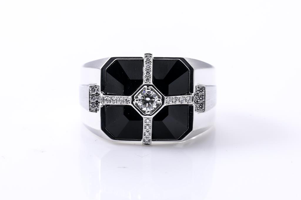 Onyx and Diamond Mens Ring