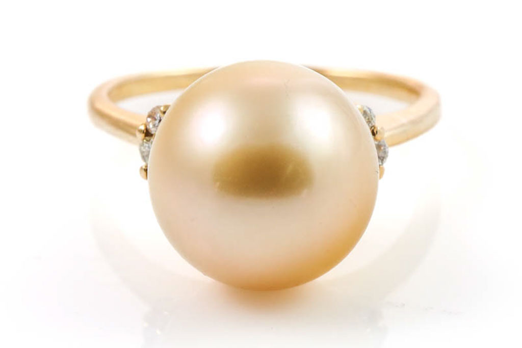 12.1mm Golden South Sea Pearl & Diamond Ring