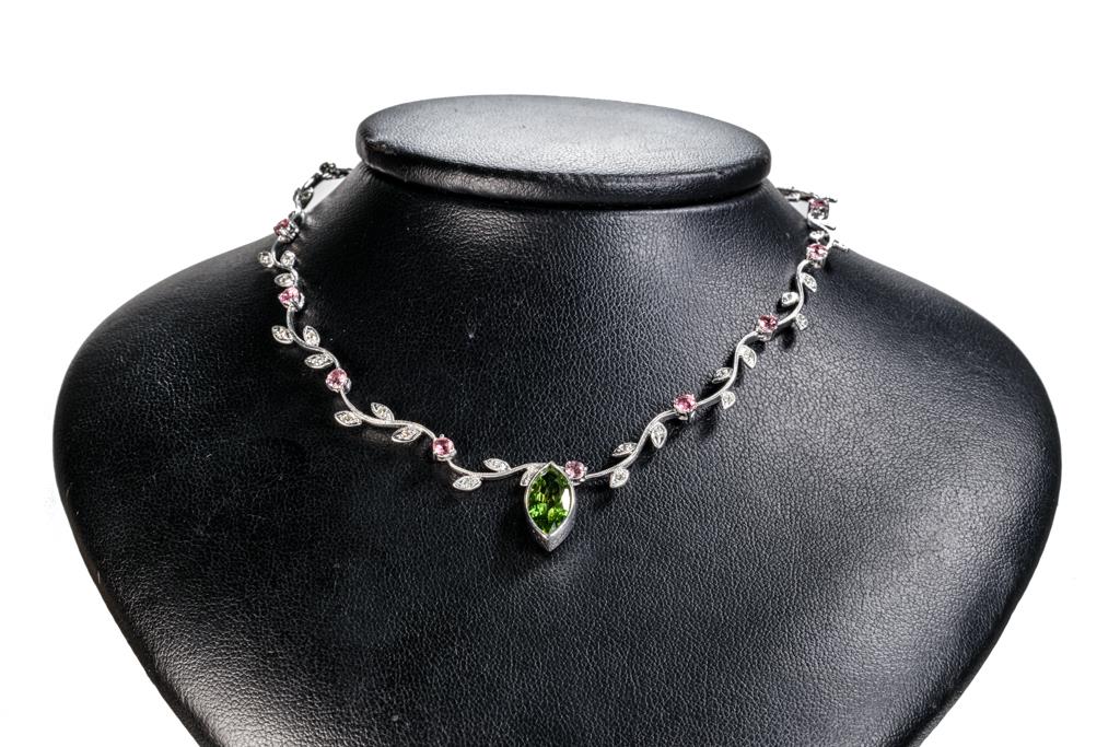 Peridot, Tourmaline and Diamond Necklace