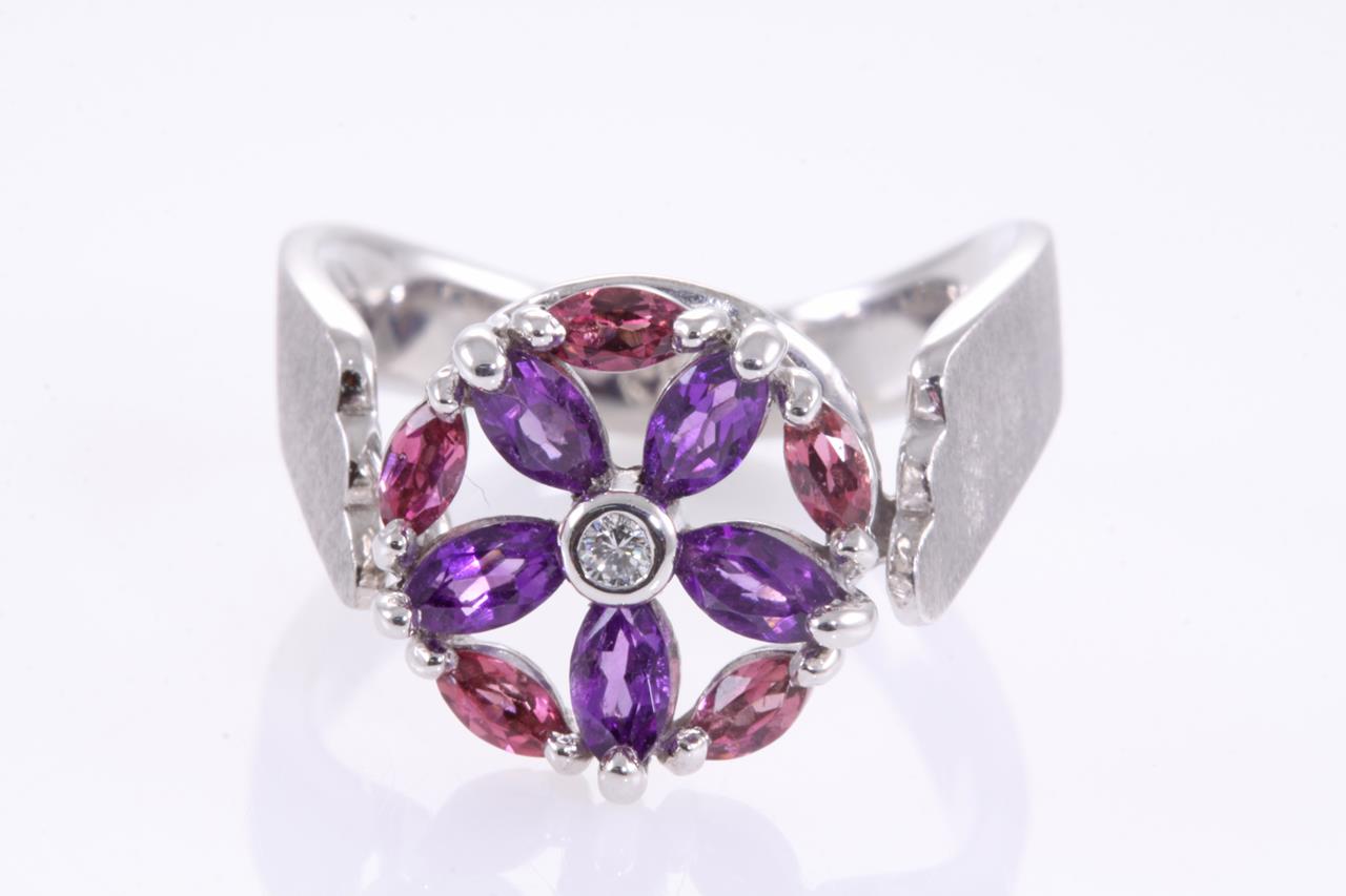 Amethyst, Tourmaline & Diamond Ring