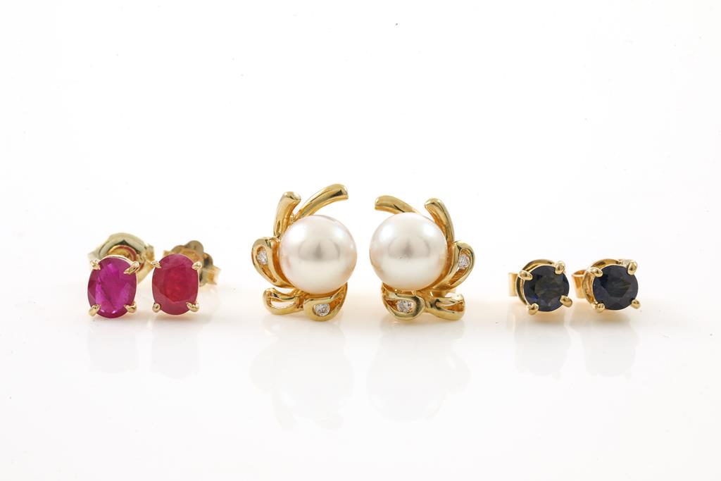 Three Pairs of Stud Earrings