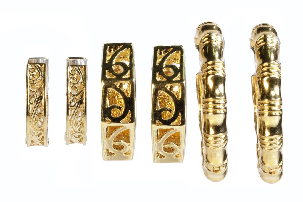 Three Pairs of Gold Hoop Earrings