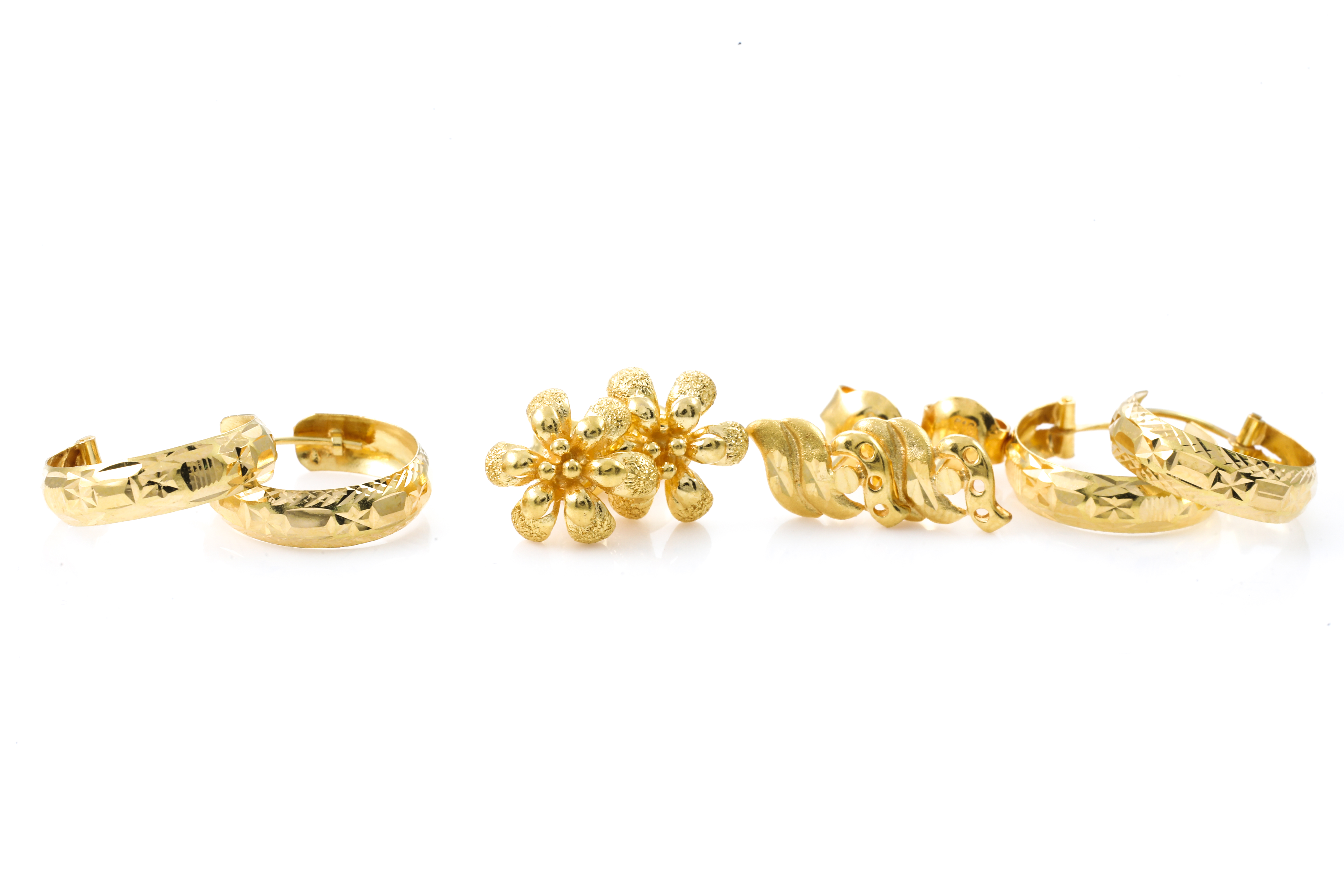 Four Pairs of 22ct Gold Earrings