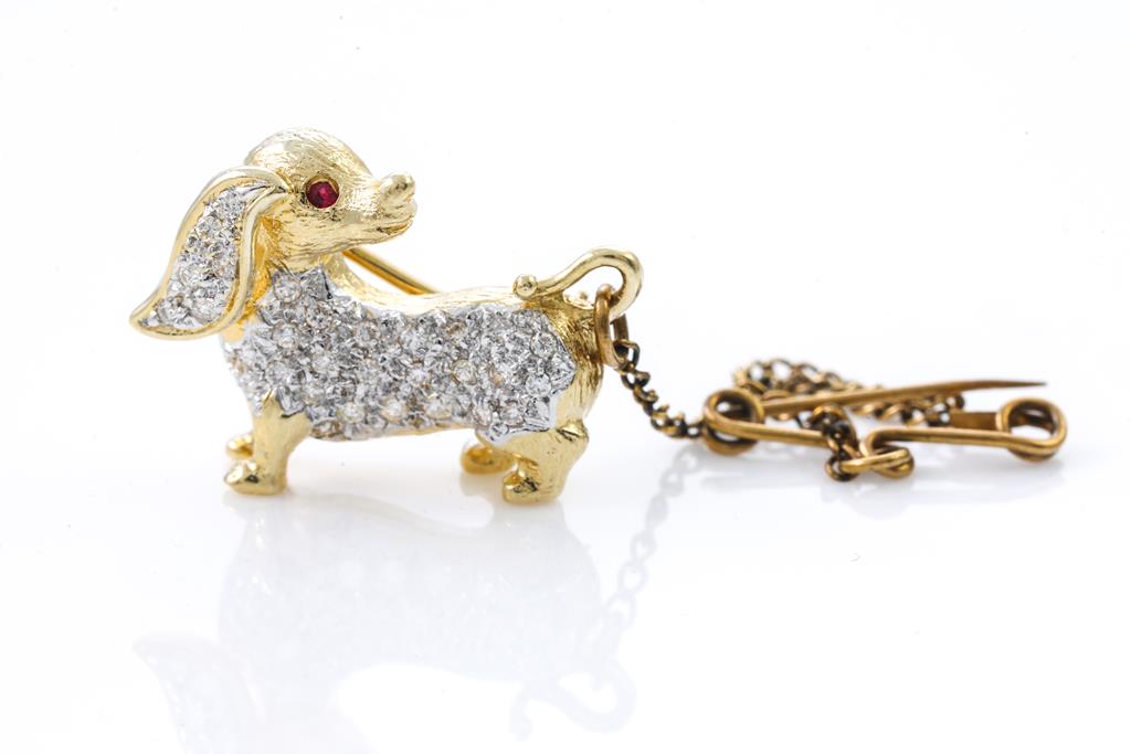 Dachshund Diamond Brooch