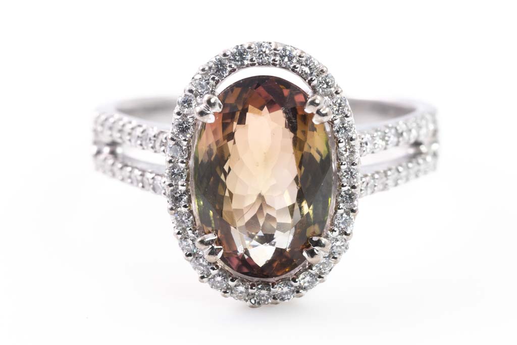 4.43ct Tri-Colour Tourmaline and Diamond Ring