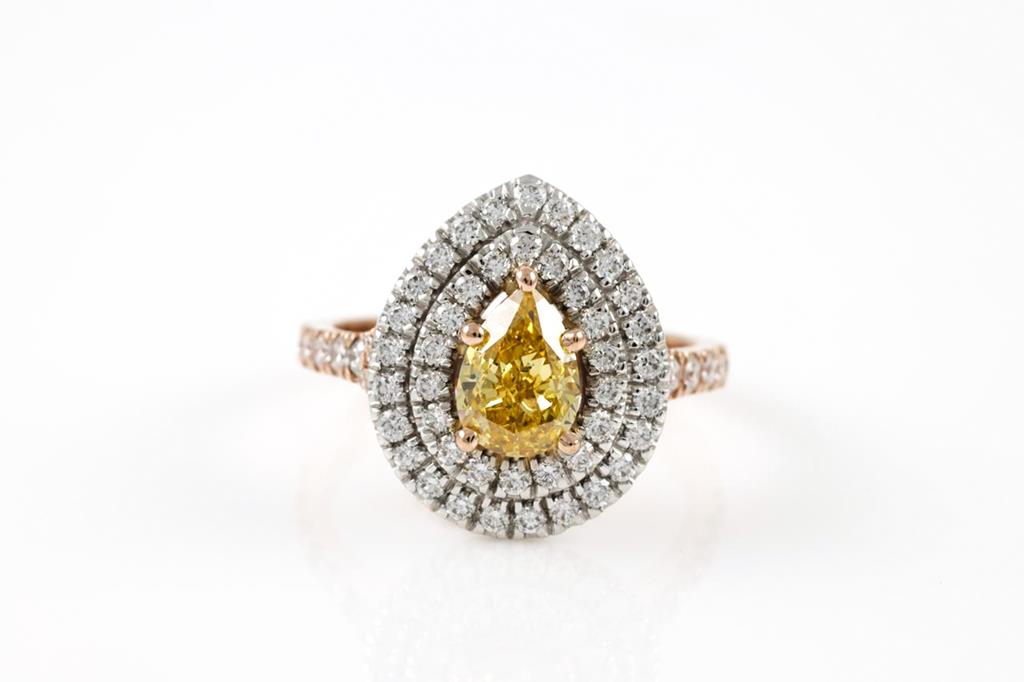 1.04ct Deep Orangy Yellow Diamond Ring GIA