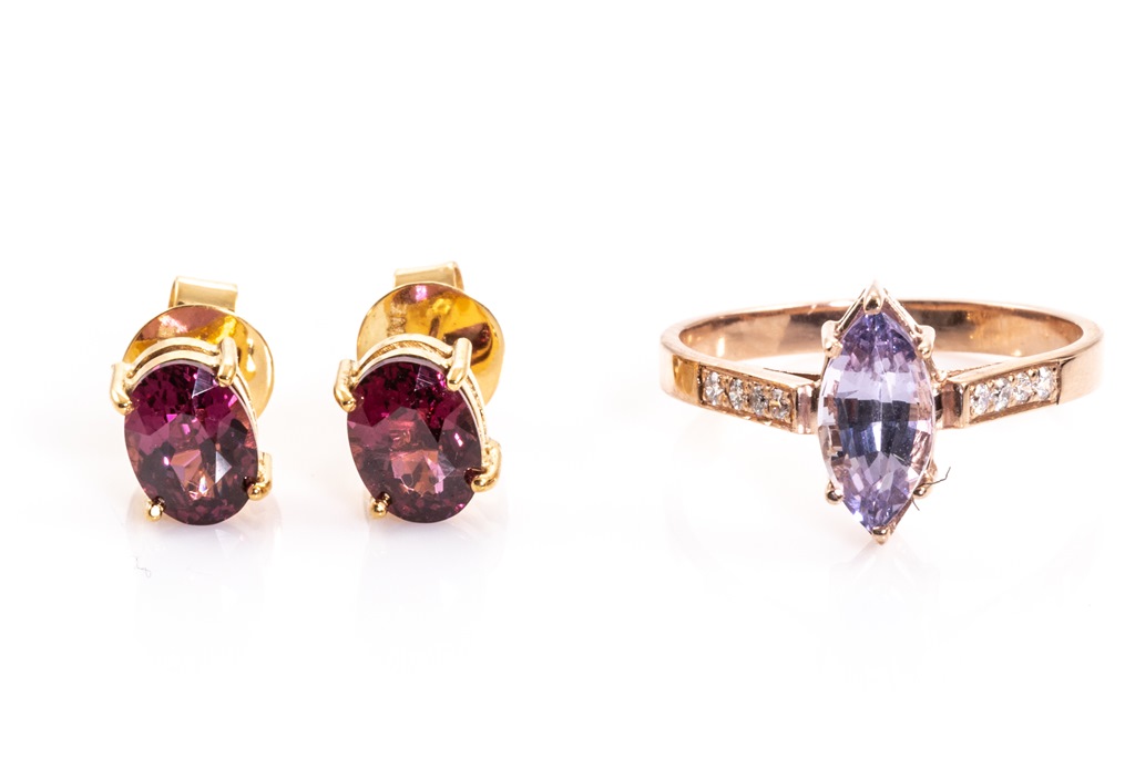 Spinel and Diamond ring and Garnet Studs