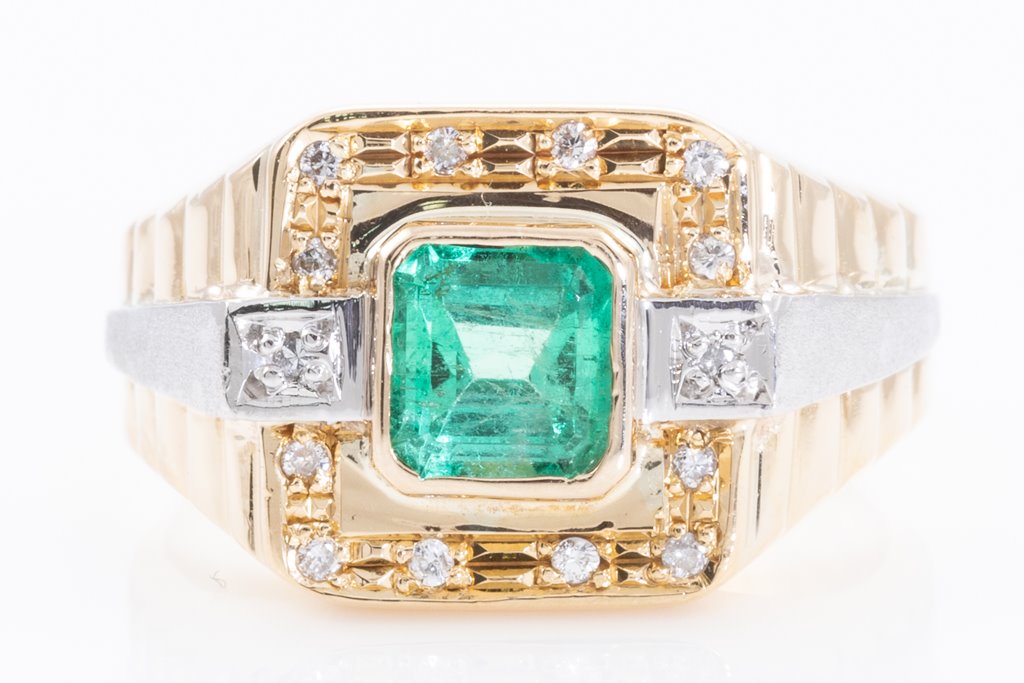 1.10ct Emerald and Diamond Mens Ring