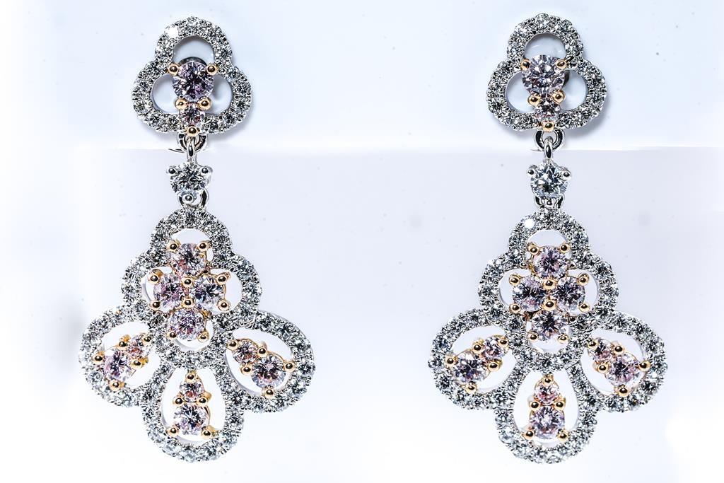 Pink and White Diamond Earrings