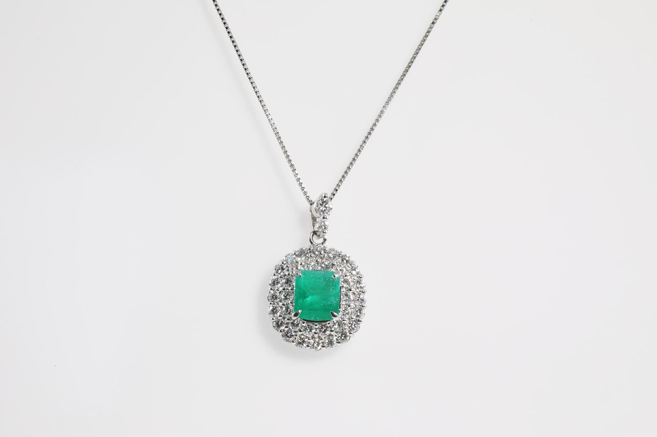 1.13ct Emerald and Diamond Pendant
