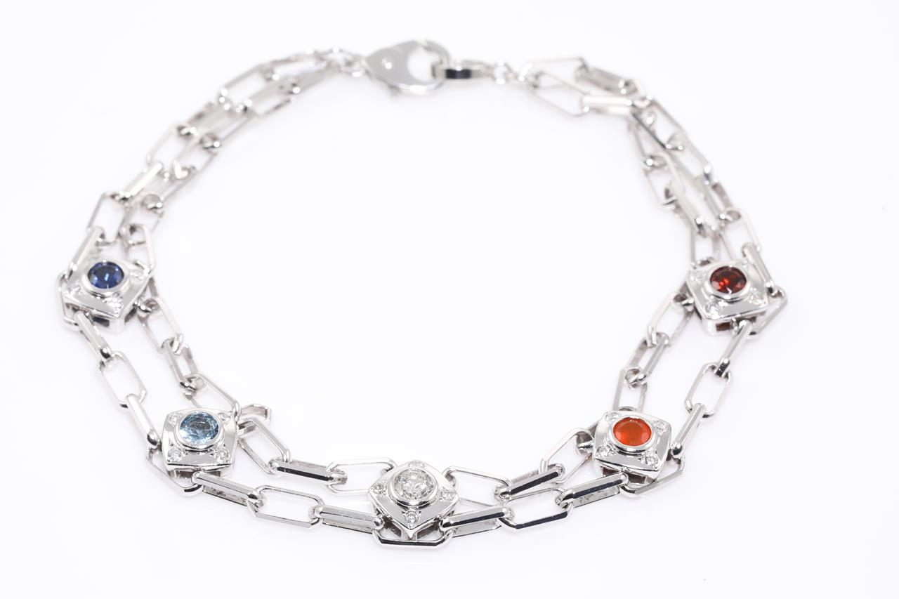 Garnet, Aquamarine, Sapphire & Diamond Bracelet