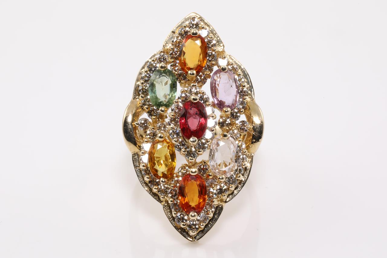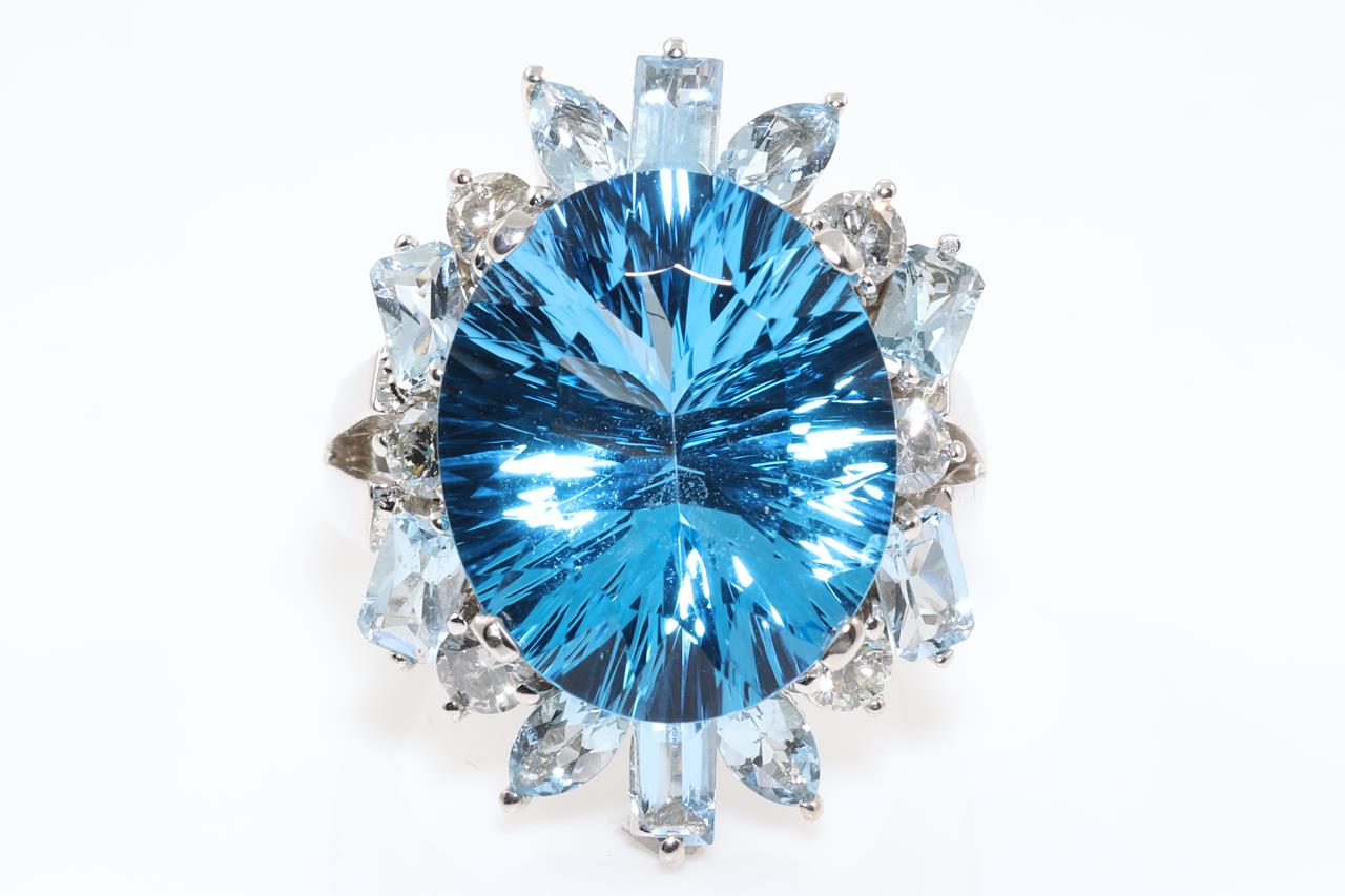 Topaz, Aquamarine and Diamond Ring