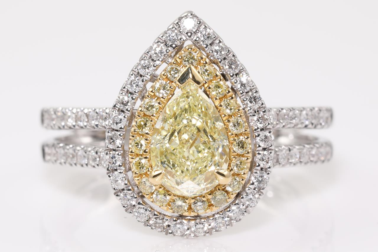 Yellow & White Diamond Halo Ring