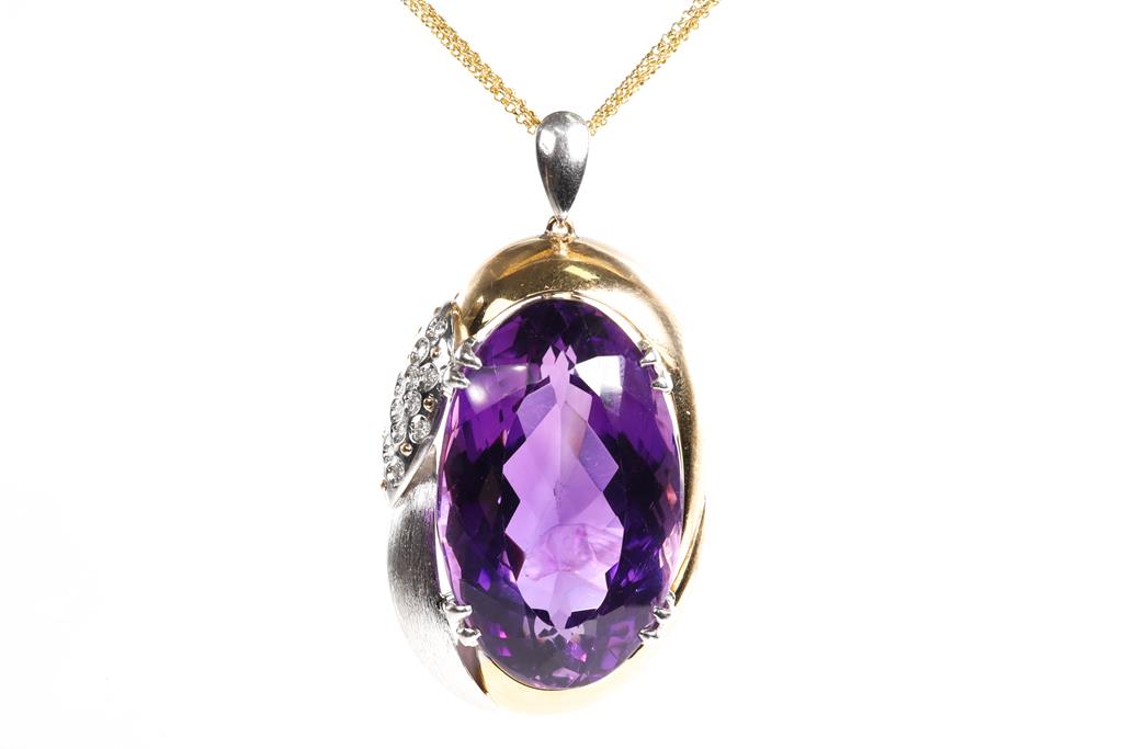 61.00ct Amethyst and Diamond Pendant