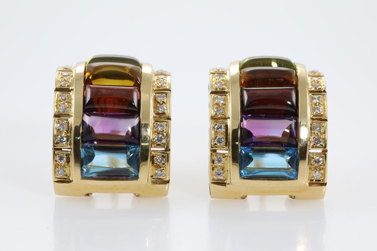 Mixed Gemstones and Diamond Earrings