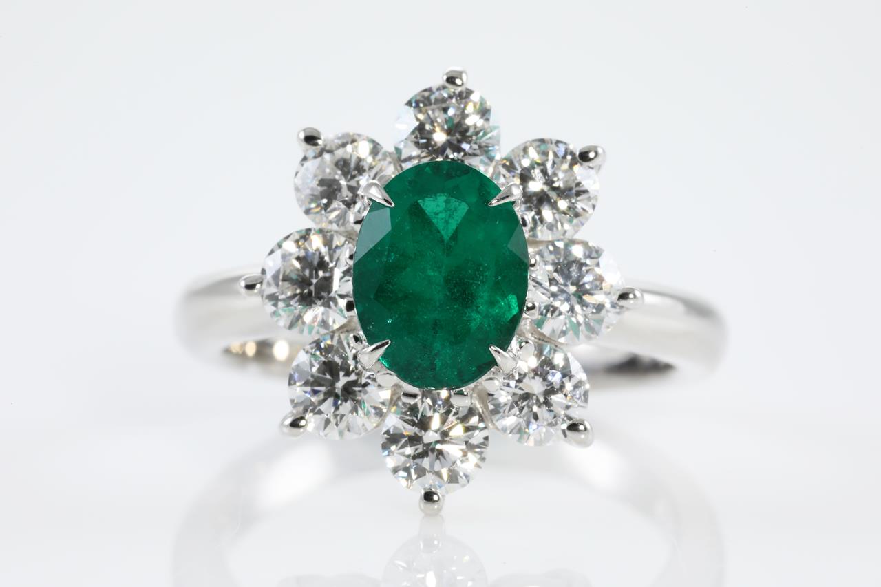 Vivid Green Colombian Emerald and Diamond Ring