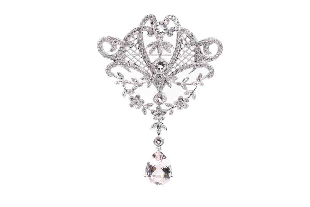 7.43ct Morganite and Diamond Brooch