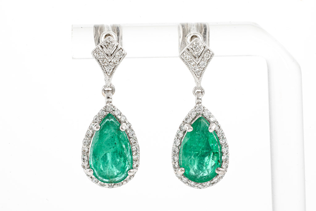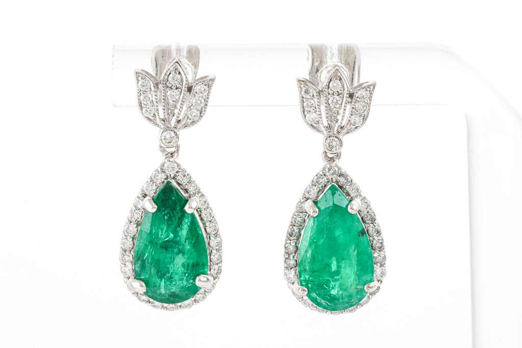 5.37ct Zambian Emerald and Diamond Earrings GSL