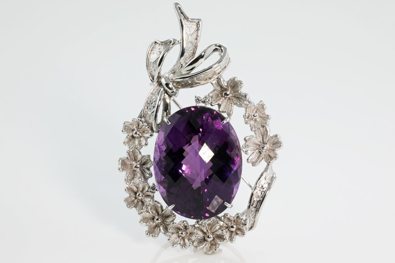 47.37ct Amethyst and Diamond Brooch/Pendant