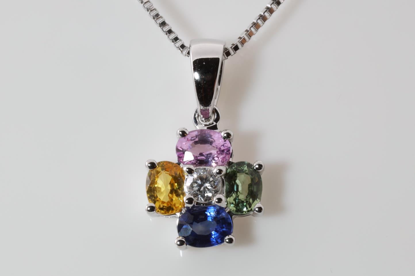 0.87ct Multi-colour Sapphire and Diamond Pendant