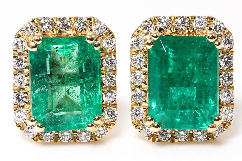 3.81ct Emerald and Diamond Earrings
