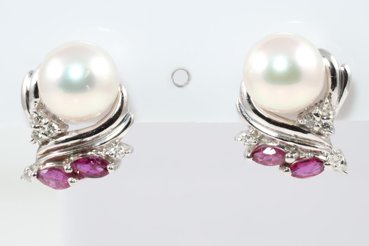 Pearl, Ruby and Diamond Earrings