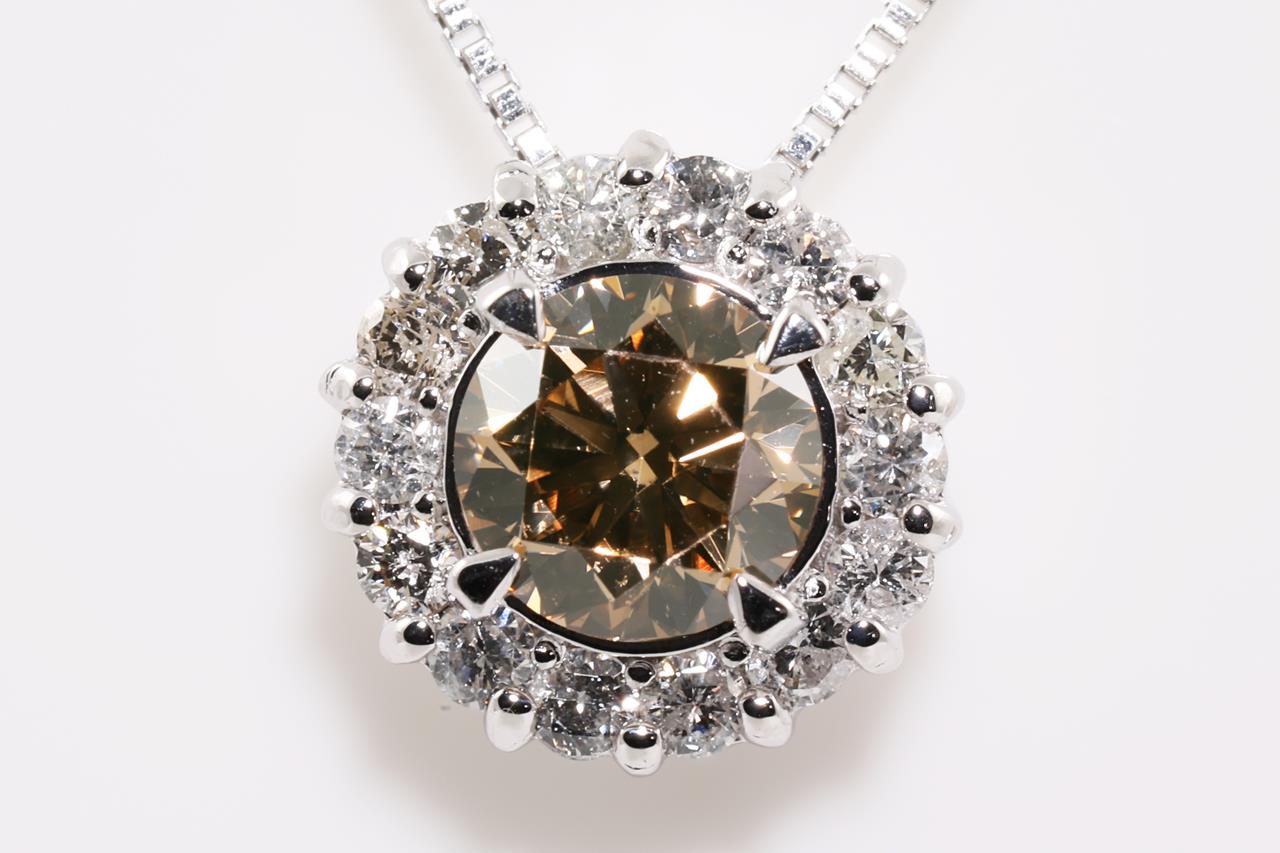 Centre Champagne Diamond Halo Pendant