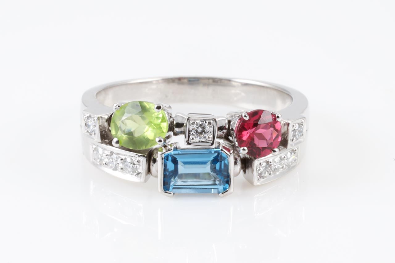 Multi Colour Gemstone and Diamond Ring