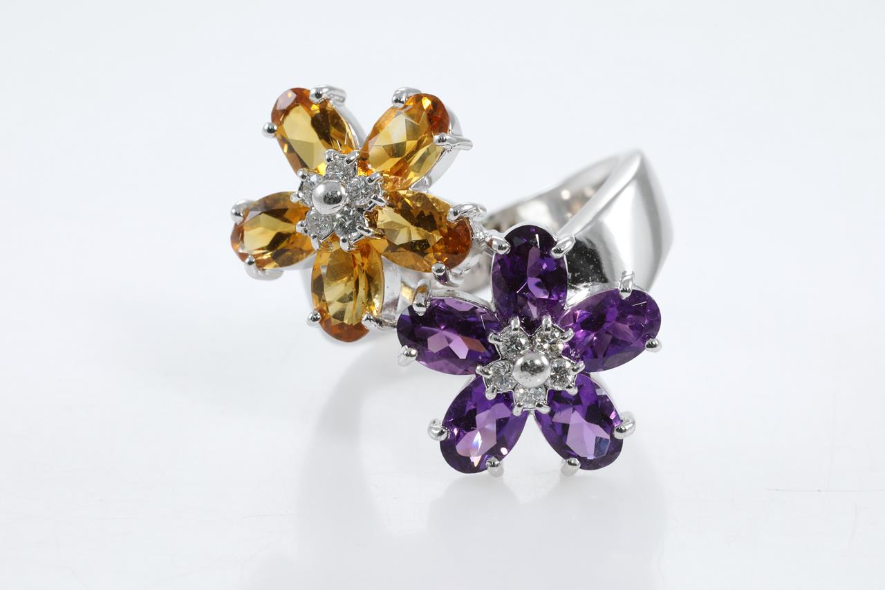 Amethyst, Citrine and Diamond Ring