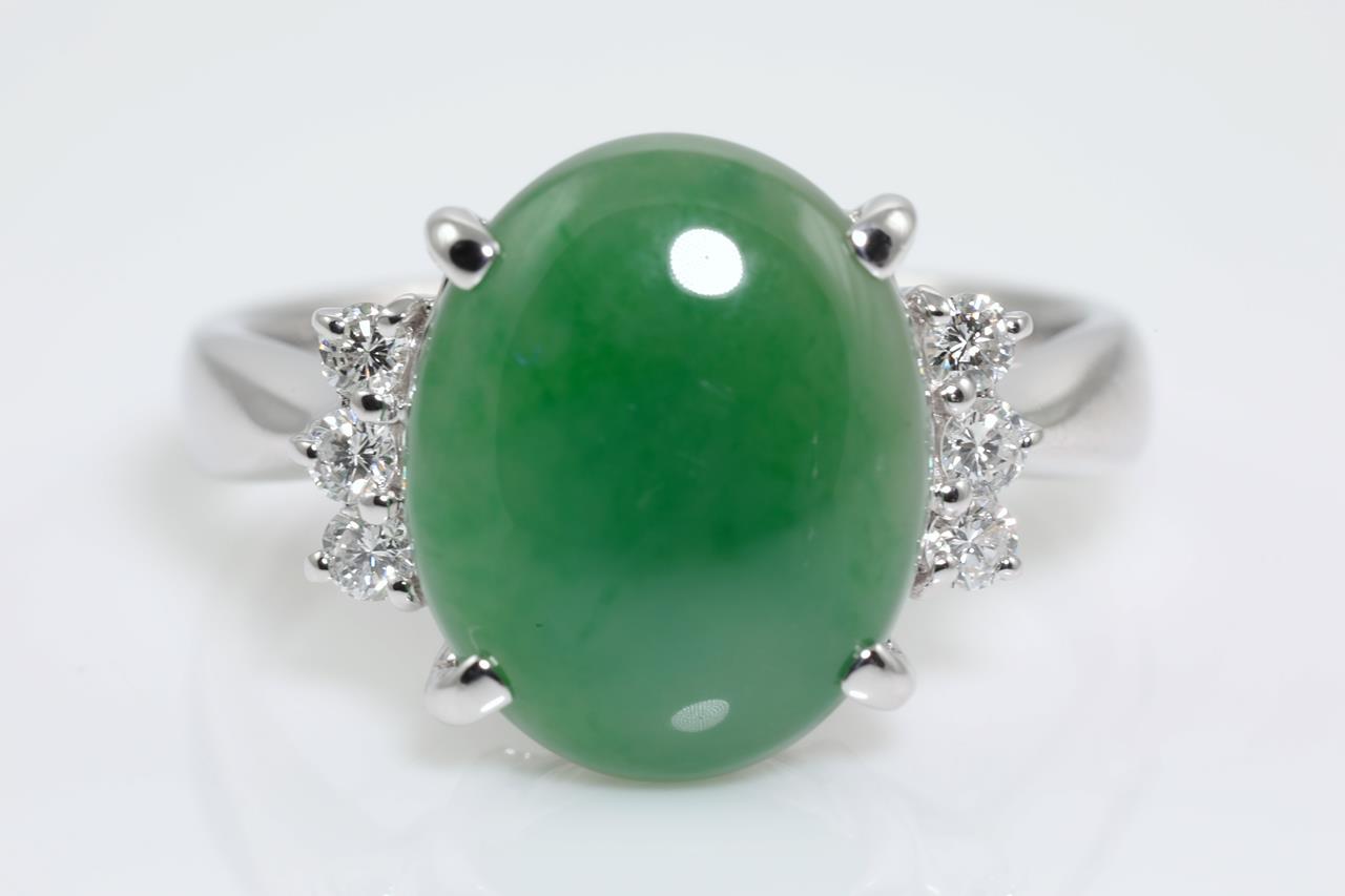 5.73ct Natural Jade and Diamond Ring