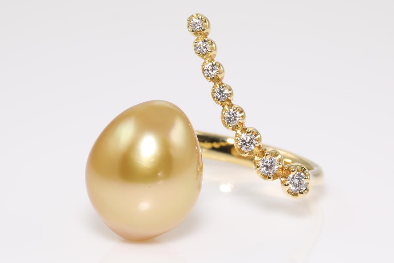 Golden Pearl and Diamond Ring