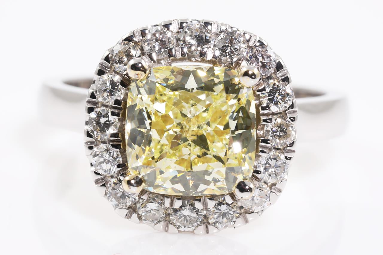 3.01ct Diamond Halo Ring GIA Natural Fancy Light Yellow SI1