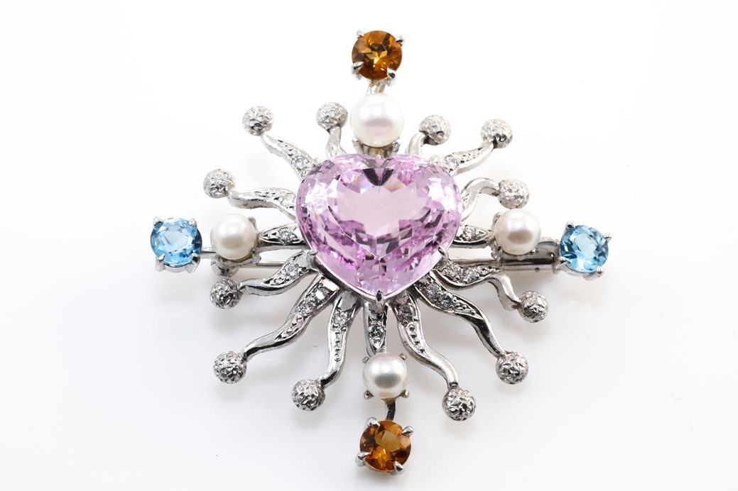 Multi-Colour Sapphire and Diamond Brooch