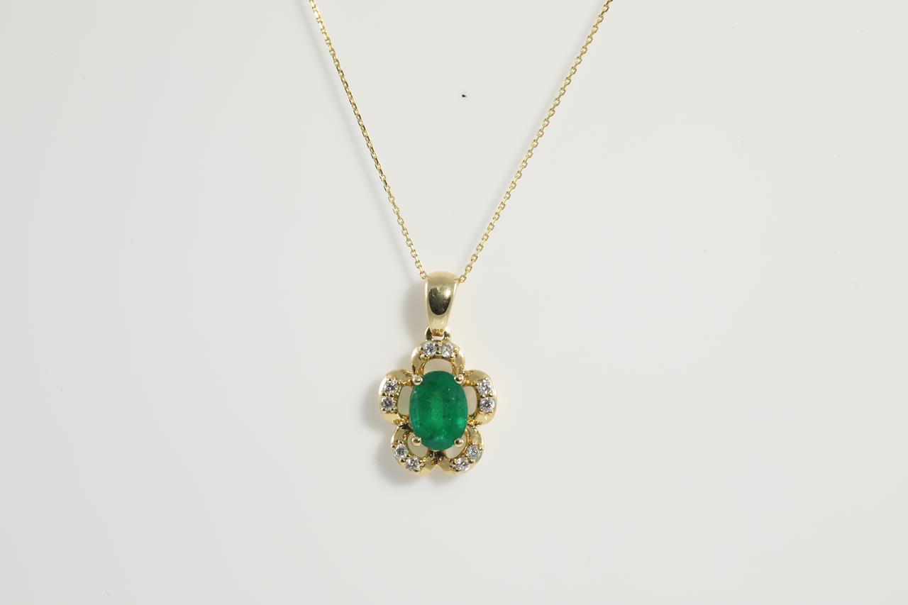 1.32ct Emerald and Diamond Pendant
