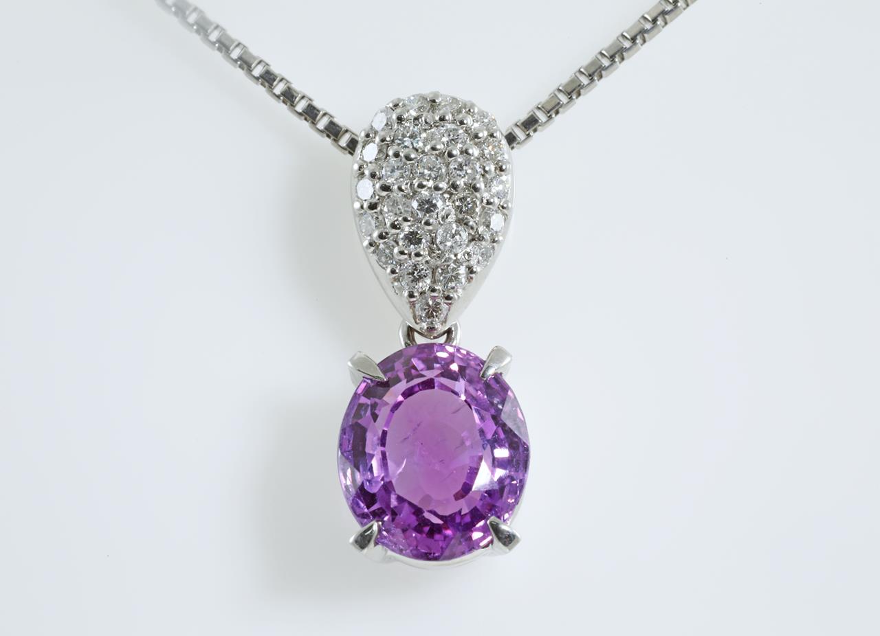Purple-Pink Sapphire 2.97ct & Diamond Pendant