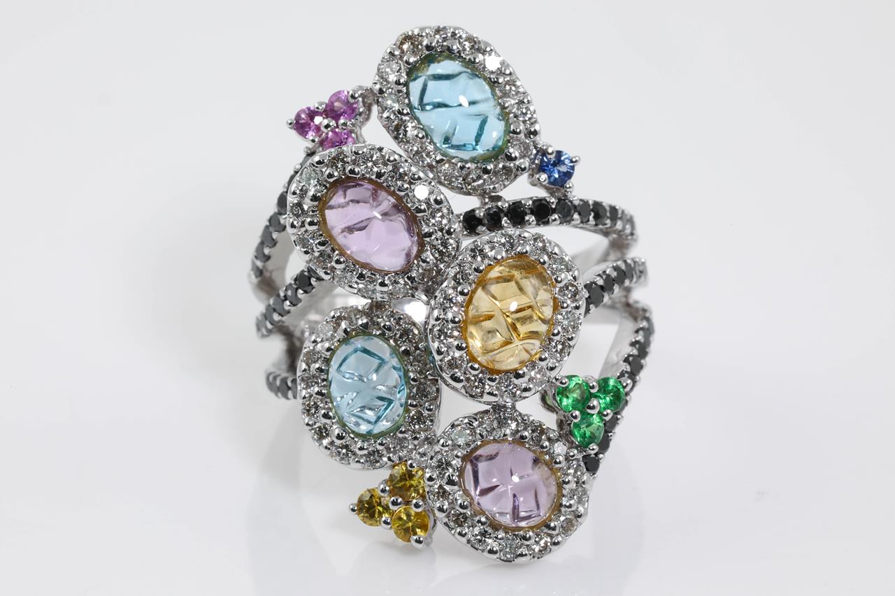 Multi-Colour Sapphire and Diamond Ring
