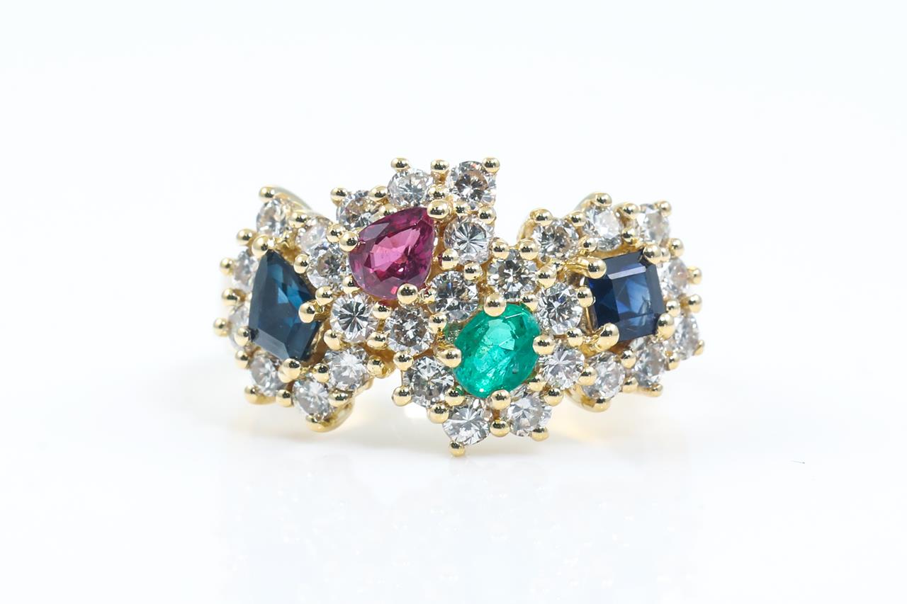 Sapphire, Ruby, Emerald and Diamond Ring