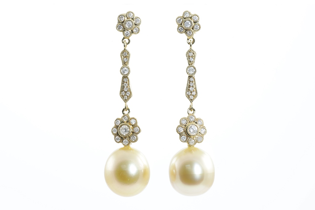 South Sea Pearl and Diamond Earrings