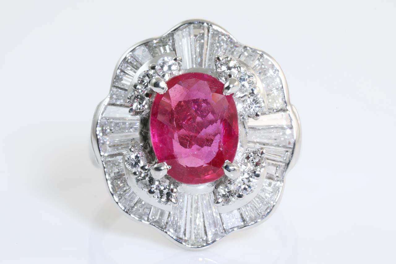5.78ct unheated Ruby and Diamond Ring