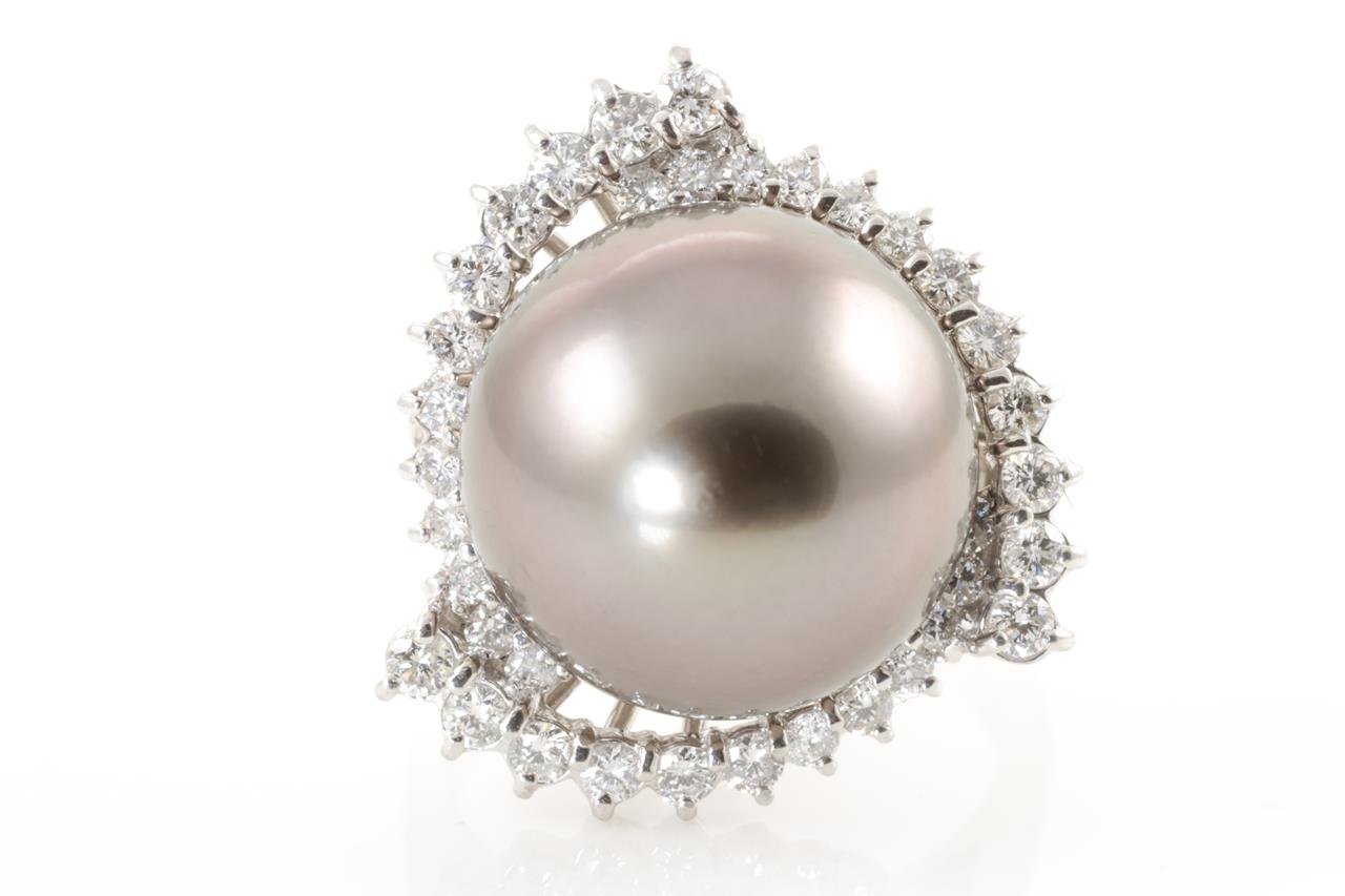 Tahitian Pearl and Diamond Ring